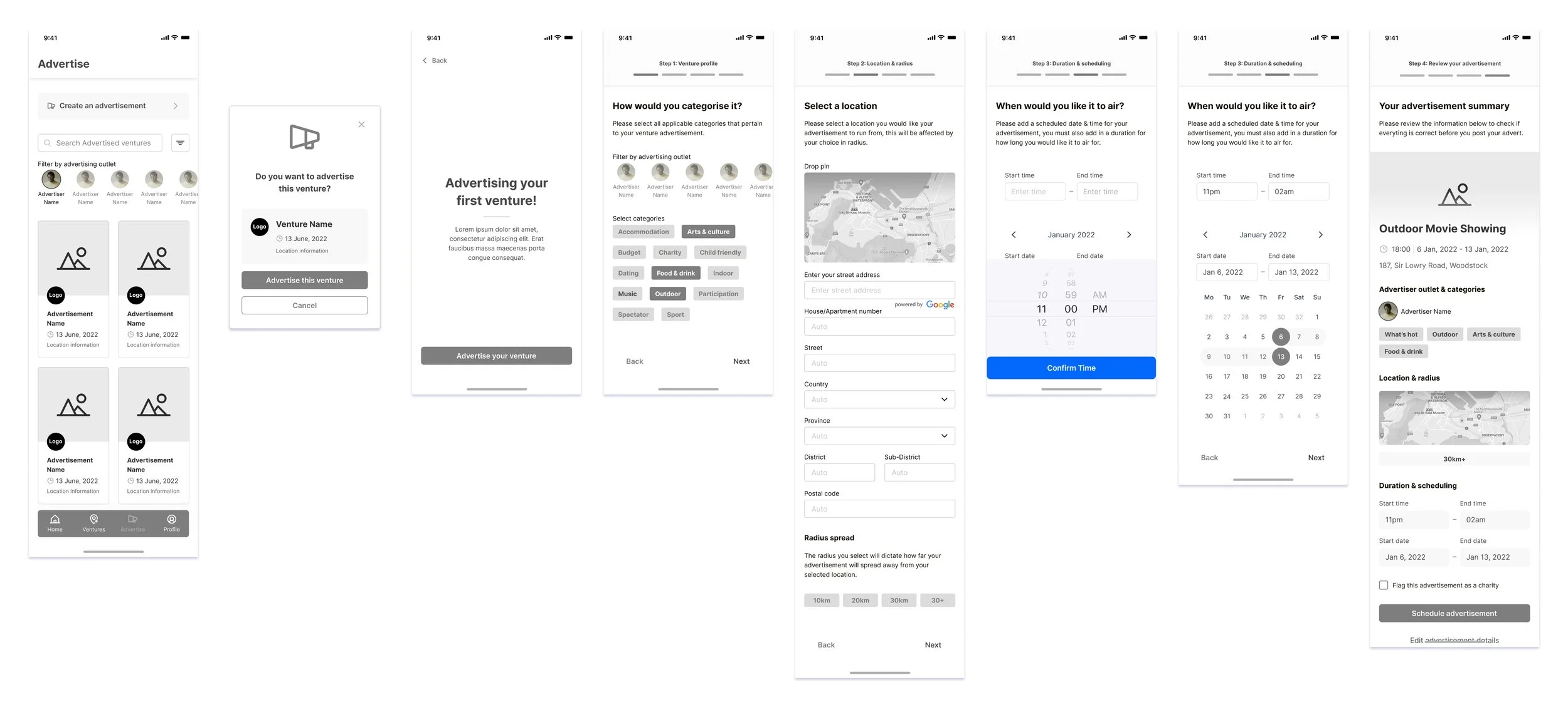 🏁 Entry point: Via the “advertise“ icon in the bottom nav.