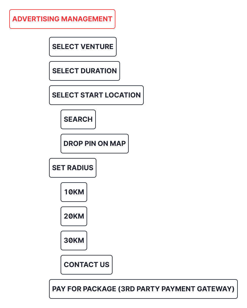 Advertisers will want to access a range of different attendees for their ventures and will need differing levels of distance available to them so they may focus/ localise their searches for attendees.